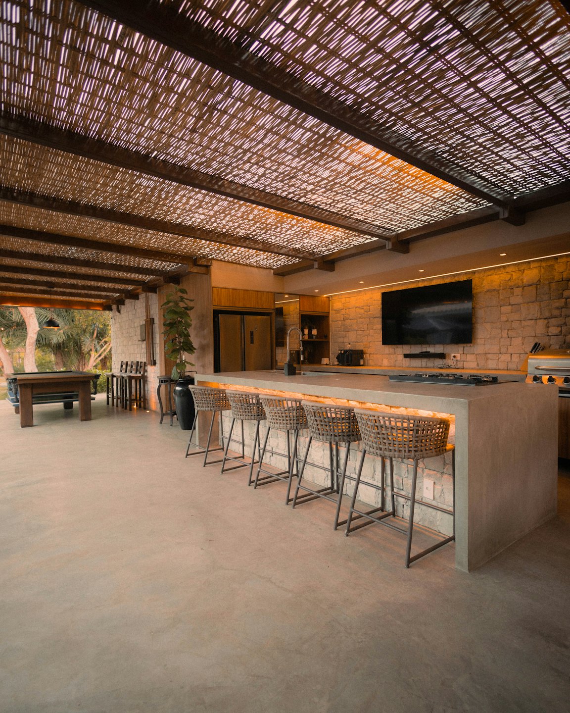 Profitez d’une cuisine d’été moderne, parfaitement intégrée pour des repas en plein air conviviaux.